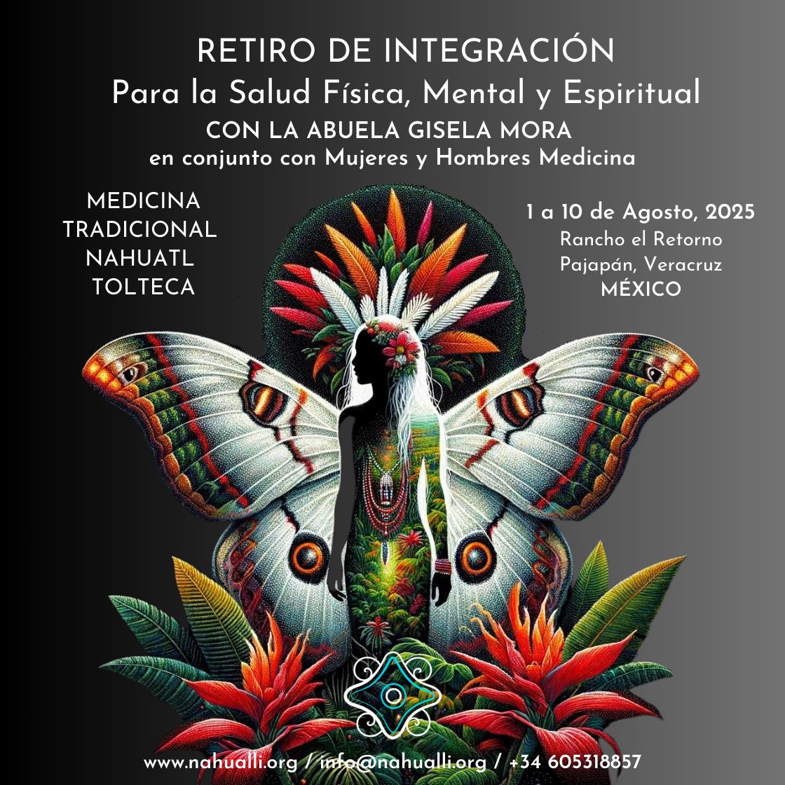Abuela Gisela Mora de la tradición Náhuatl-Tolteca. Practicante de la Tradición por Linaje (Abuela Sanadora de raíz Tolteca), Mujer Medicina, Psicoterapeuta Corporal Integrativa (maestría en Equidad de Género), Tiene una amplia maestría en el uso de las Flores y la Herbolaria Tradicional Mexicana y Europea. Licenciada en Enfermería, Psicología, Medicina Alternativa, Practicante de la Medicina Tradicional y Etnomedicina Náhuatl por más de 30 años. Terapeuta Energética, Terapeuta Floral, Terapeuta Holística (Flores de Bach, Homeopatía y Fitoterápia) Instructora Certificada en Competencia Laboral. Ha formado a más de 6000 mujeres como Psicoterapeutas y Mujeres Medicina especialmente en la Sierra de los Tuxtlas, zona Olmeca en Veracruz. Es un puente entre la Medicina Ancestral y la Medicina Alopática. La Abuela Gisela Mora ha sido profundamente influenciada por la Sabiduría de las tradiciones  Nahuatl, Maya, Tolteca y Guardiana de la memoria Olmeca.